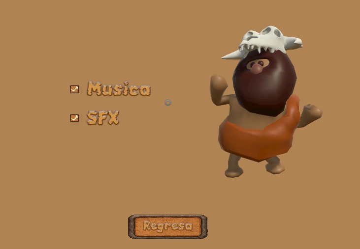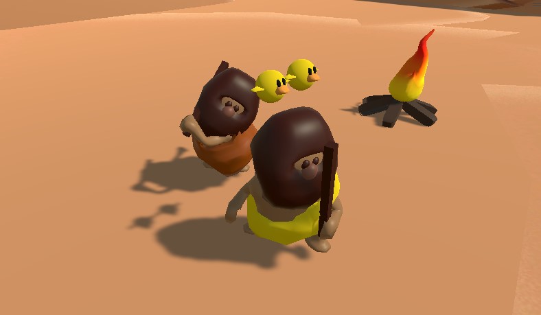 Juego competitivo 3D tipo brawler donde dos cavernícolas se enfrentan golpeándose con palos para noquearse. Cada jugador tiene tres oportunidades (representadas por pollos en la cabeza) antes de ser derrotado.
